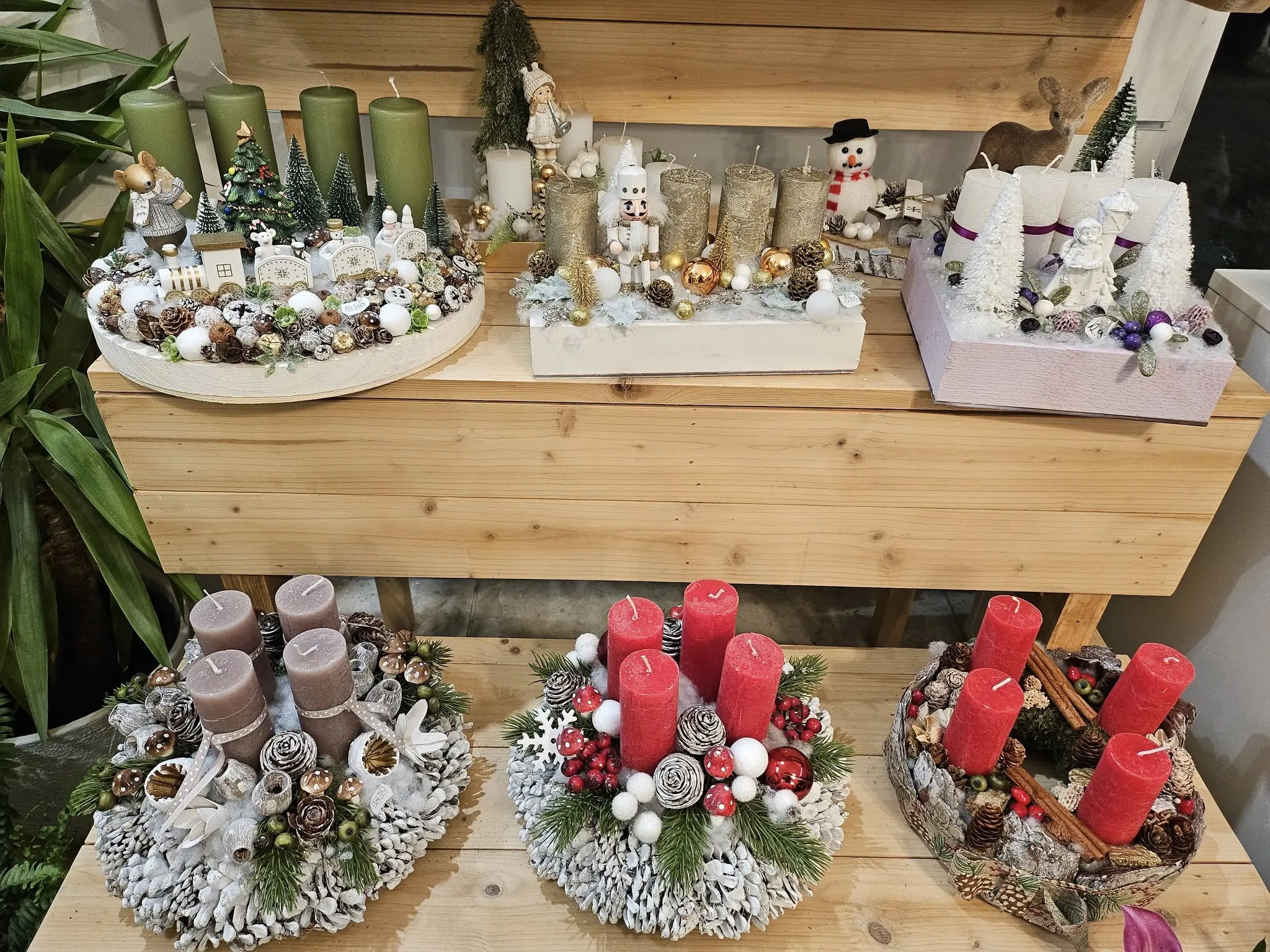 Válogatás a Harmónia Virágszigetben készült csokrokból, koszorúkból és dekorációkból. A kínálat naponta változhat — ha valamit szeretne, érdemes telefonon egyeztetni.