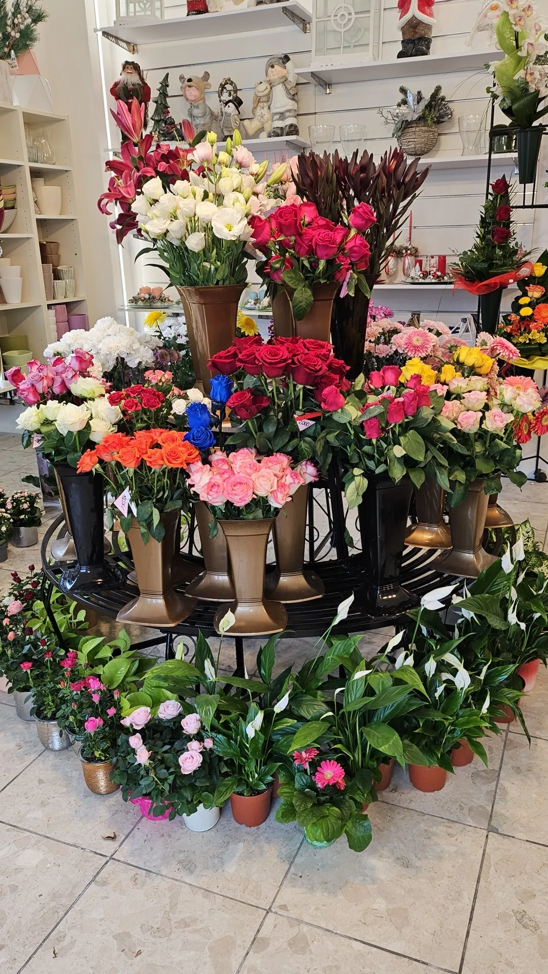 Az alábbi képek ízelítőt adnak a boltban készülő csokrokból és kegyeleti kompozíciókból. Ha valamelyik Önnek is tetszik, hívjon — megnézzük, mi érhető el a jelenlegi kínálatból.
